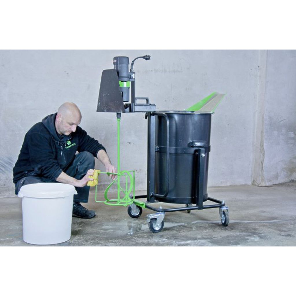 Миксерная установка FloorMix 2300, в комплекте с ёмкостью 110 л и поддоном на колесах, предназначена для тщательного перемешивание растворов для наливных полов, выравнивающих смесей, армированных стекловолокном шпатлевок, цветных покрытий, жидких пластиков. Оптимально подходит для жидкотекучих смесей для выравнивания пола.