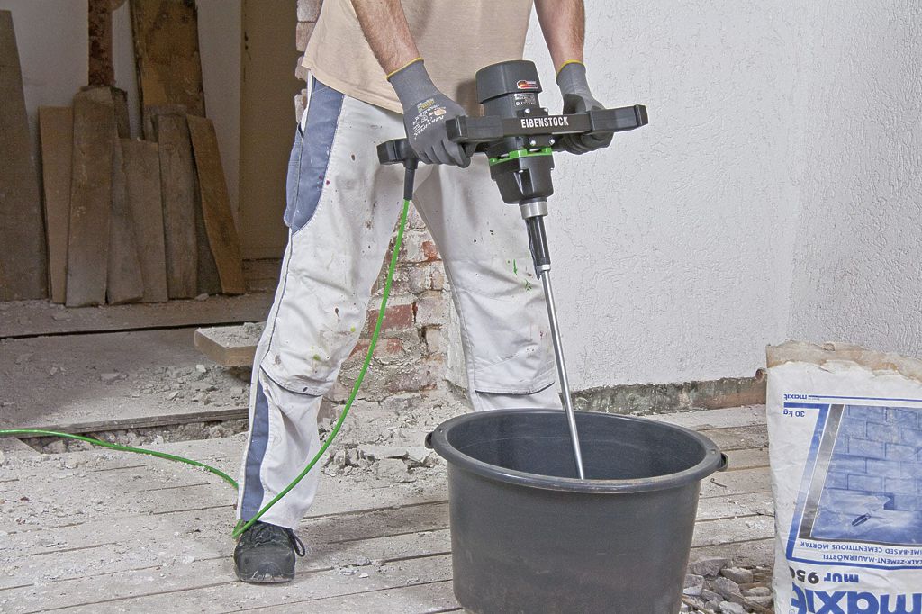 Строительный миксер EHR 20.1 R для объемов до 50 кг. Применяется для замешивания строительных материалов со средней и высокой вязкостью, например, шпатлевочные и выравнивающие массы, клей для плитки, готовые растворы, готовые штукатурки. Области применения: сухое строительство, укладка керамической плитки, малярные и штукатурные работы, высотное строительство, ландшафтные работы.