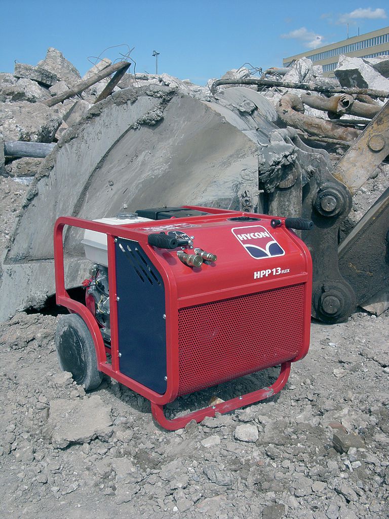Уникальная принудительная система охлаждения HYCON обеспечивает постоянное и равномерное охлаждение гидравлического масла. Компактная модель, которая легко перевозится в багажнике легкового автомобиля, проходит в дверной проем и лифт. Колеса облегчают передвижение по рабочей площадке.