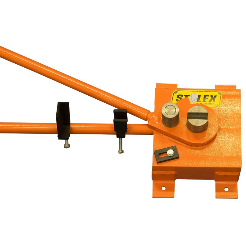 Прочная и надежная стальная конструкция увеличивает срок службы устройства. Возможно крепление на любой верстак. Станок оснащен ограничителем угла гиба и ограничителем длины подачи прута.